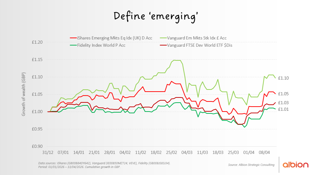 A timely example of this in 2026 is South Korea. The market has been one of the standout performers year to date, delivering returns of roughly +44% in GBP terms. However, investors may not realise that their exposure to Korea is not simply a function of their asset allocation - it is also determined by how their chosen index provider classifies the country.